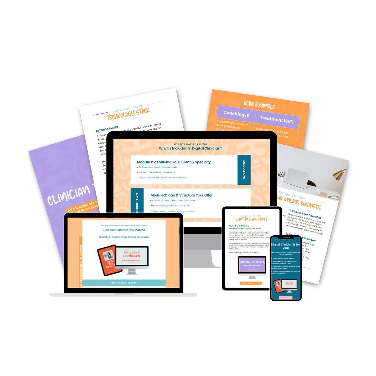 Use our Digital Clinician roadmap, coaching calls, and platform to create your offer.
